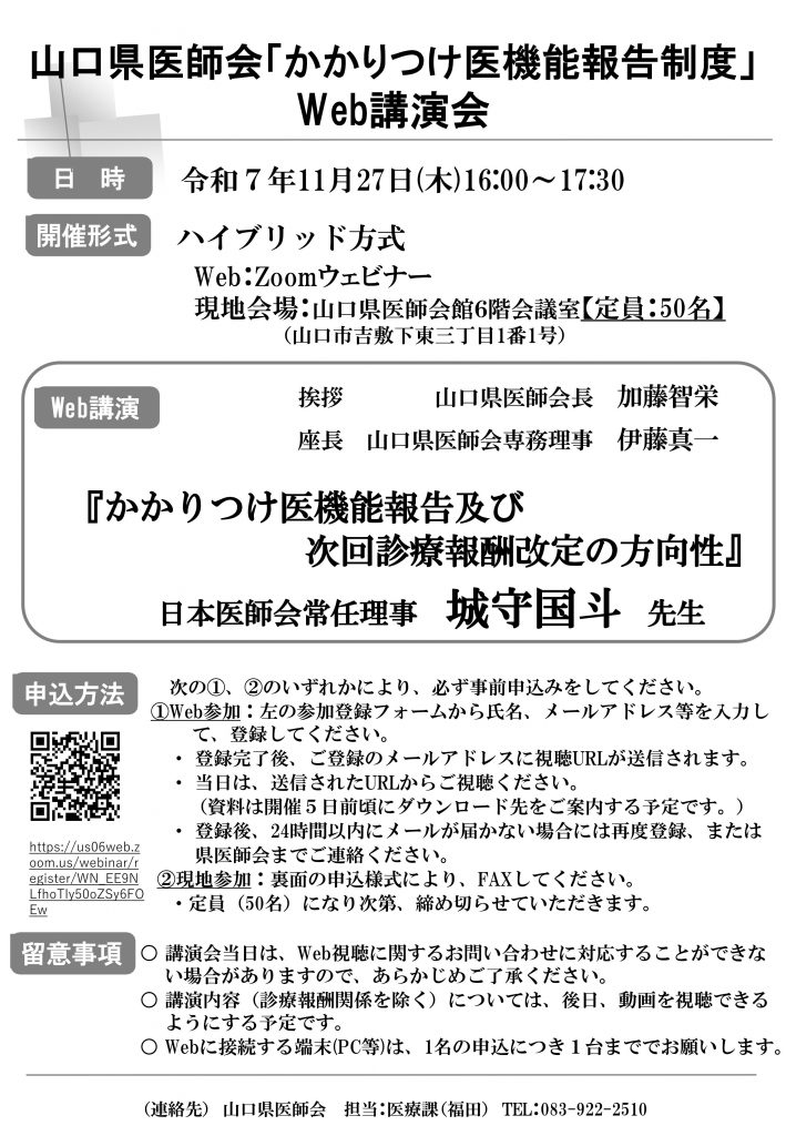 山口県医師会「かかりつけ医機能報告制度」 Web講演会のご案内