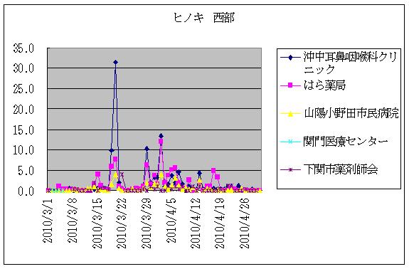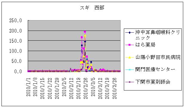 | 西部 | 小野田 | 山陽小野田市民病院 | ヒノキ | 1.5 | 3.9 | 0.9 | 0.3 | 1.2 | 3.2 | 1.2 | 0.3 | 0.8 | 0.3 | 0.8 | 0.0 | 2.5 | 0.0 | 0.5 |