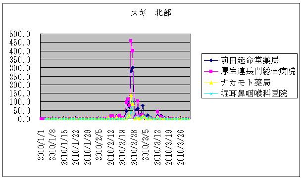 | 2010年、スギとヒノキの1月から4月までのグラフ(このページの下に配置) | |||||